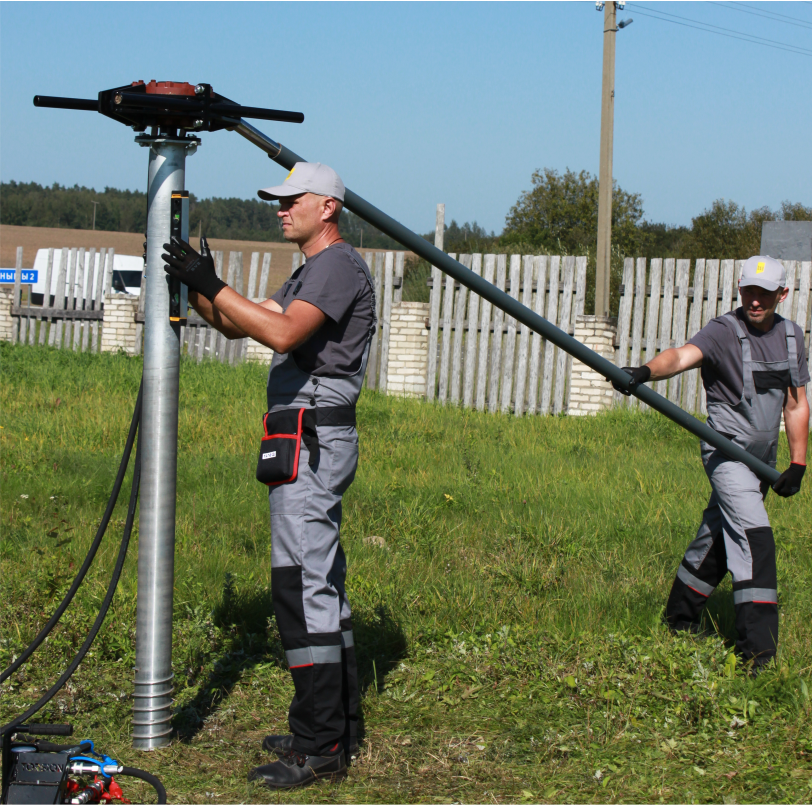 Для ручного монтажа сваи длиной до 1,5 метров, диаметром 57мм либо 76мм вам достаточно будет рычажной штанги для ручного вкручивания.