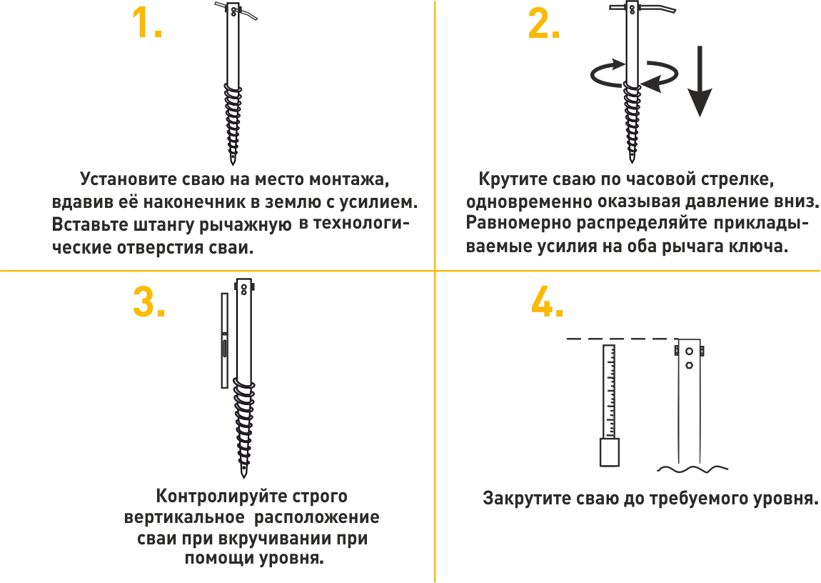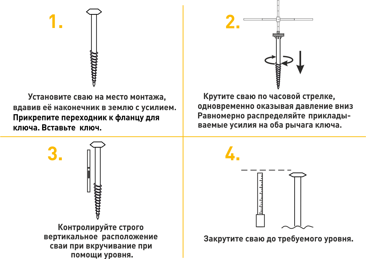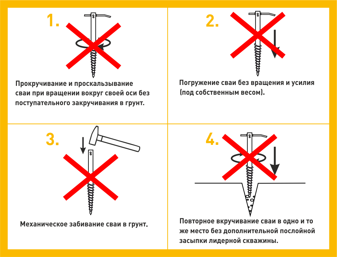При монтаже винтовых свай соблюдайте требования правил охраны труда, пожарной безопасности и охраны окружающей среды.